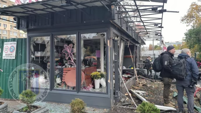 In de wijk Solomianskyi raakte een gasleiding aan de voorkant van een woongebouw van negen verdiepingen beschadigd, waardoor er brand ontstond in een winkel. Ook drie geparkeerde auto’s vatten vlam en brandden uit.