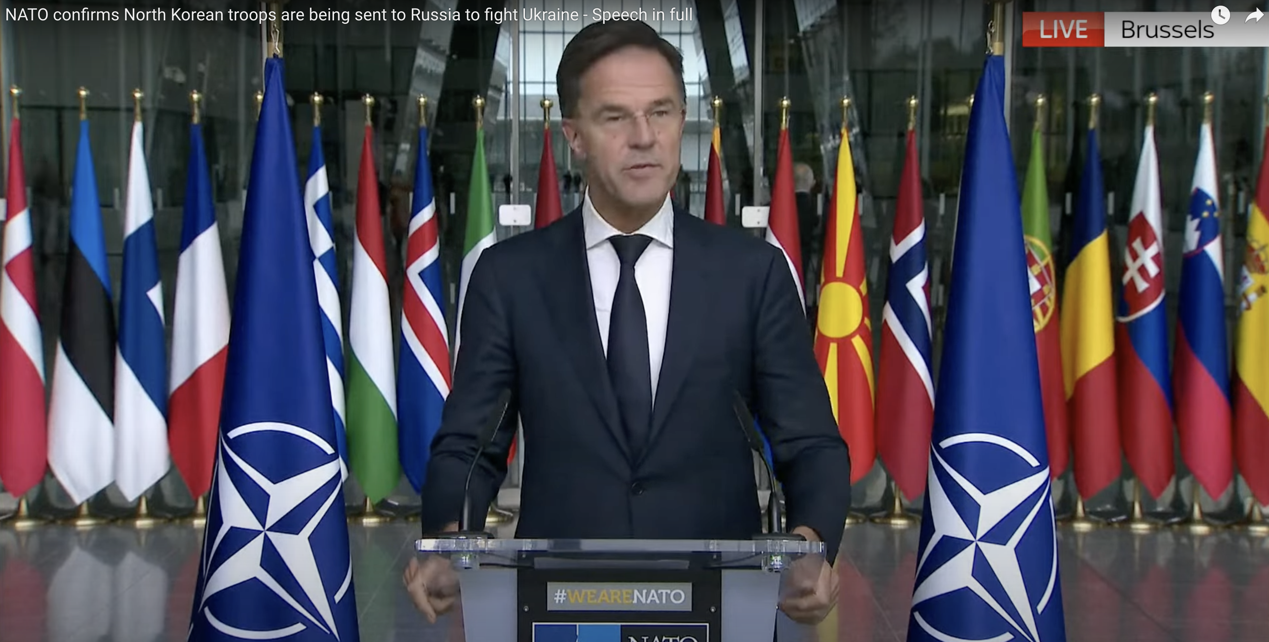 Afgelopen maandag bevestigde secretaris-generaal Rutte van de NAVO, dat er inderdaad Noord-Koreaanse troepen worden ingezet in de Russische oblast Koersk, dat deels door Oekraïense militairen wordt bezet.