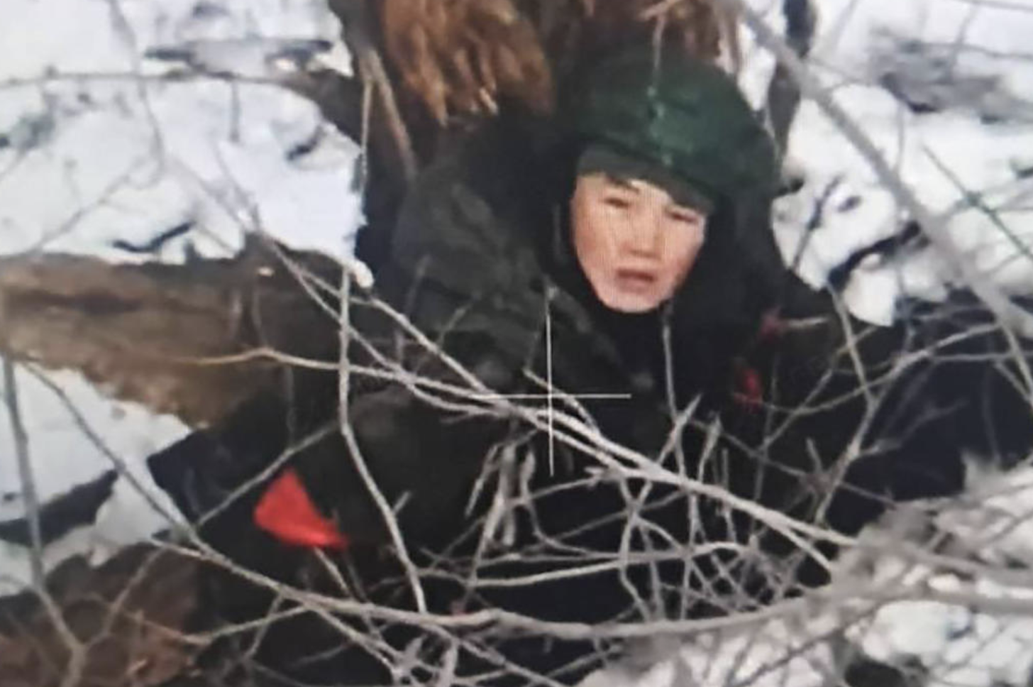 Drone-beeld waarvan Oekraïne claimt dat het een Noord-Koreaanse militair is (foto gedeeld via Telegram)Mocht het inderdaad om Noord-Koreanen gaan, dan zou dit het eerste fotografische bewijs zijn (foto gedeeld via Telegram)