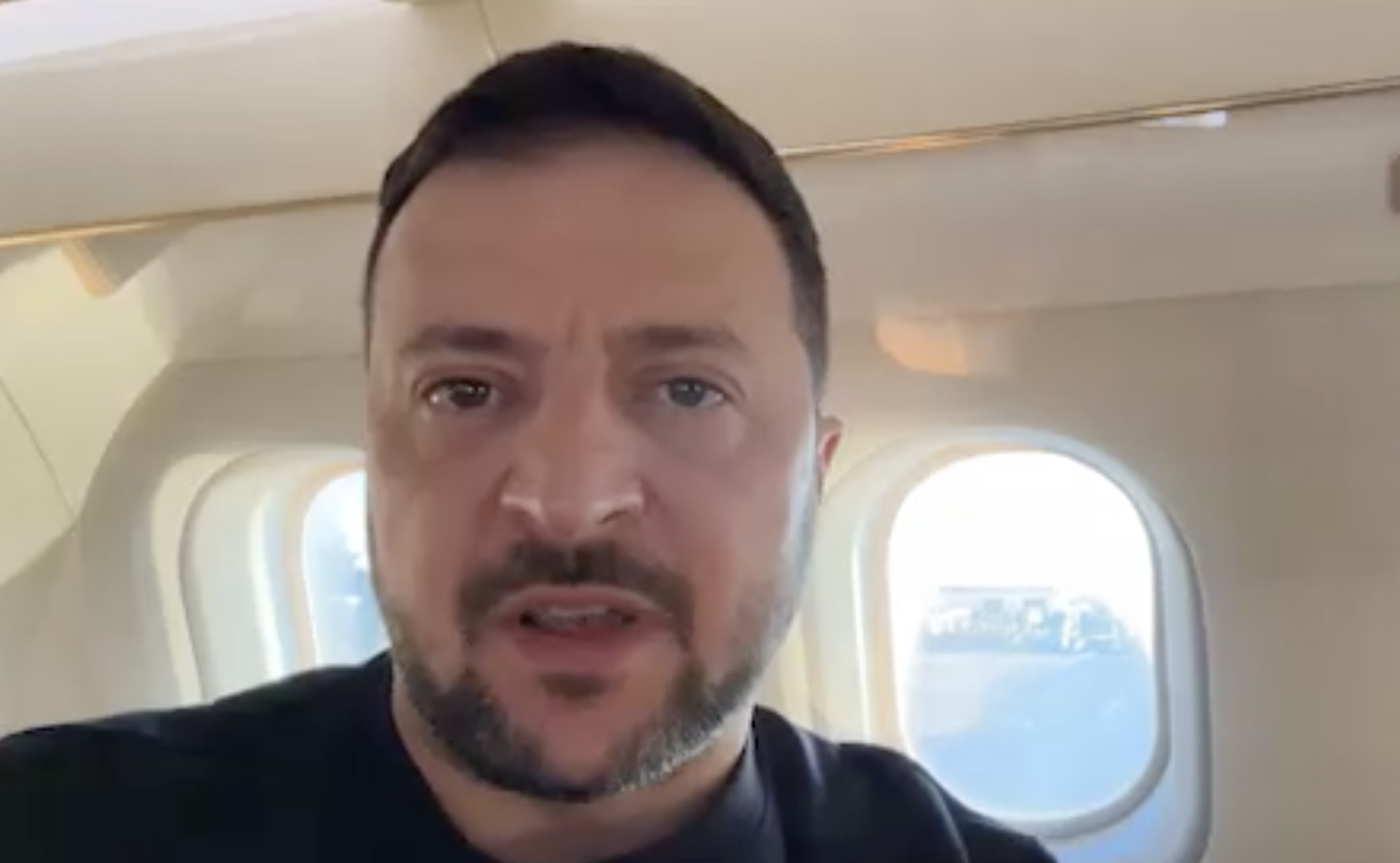 In een videoboodschap vanuit het vliegtuig voor vertrek naar Brussel, deelde president Zelensky wat er in België allemaal op het programma staat (screenshot)