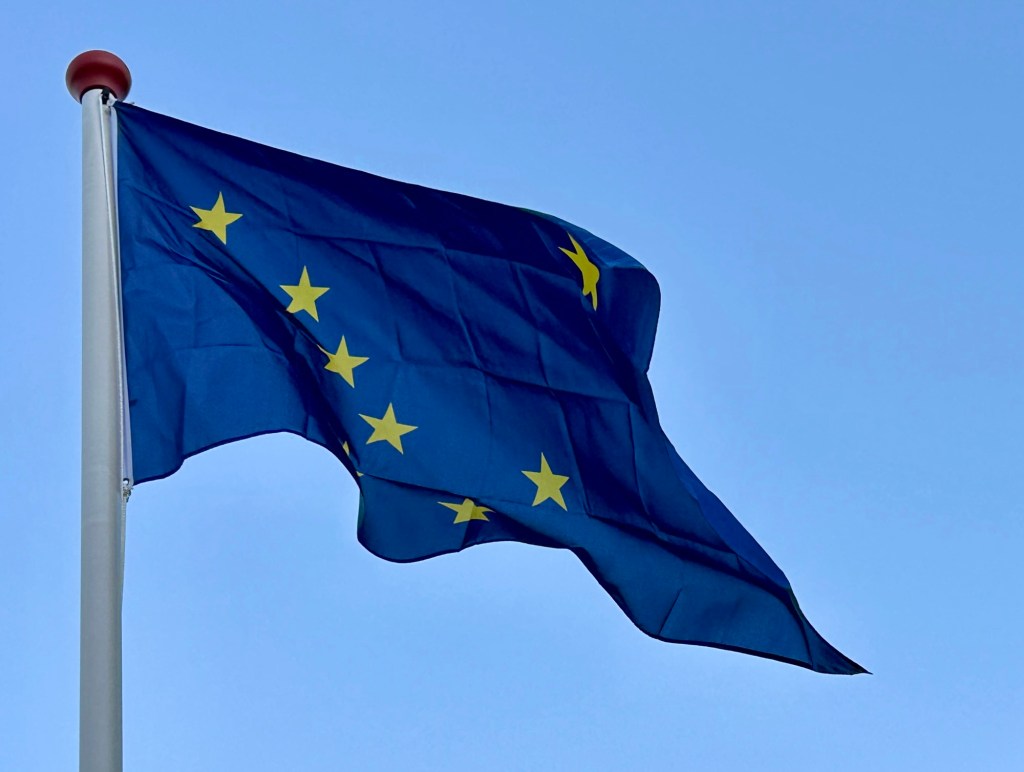 De vlag is blauw met het sterrenbeeld Grote Beer (7 vijfpuntige gele sterren) plus de Poolster (een grotere vijfpuntige gele ster in de top van het uitwaaiende gedeelte).