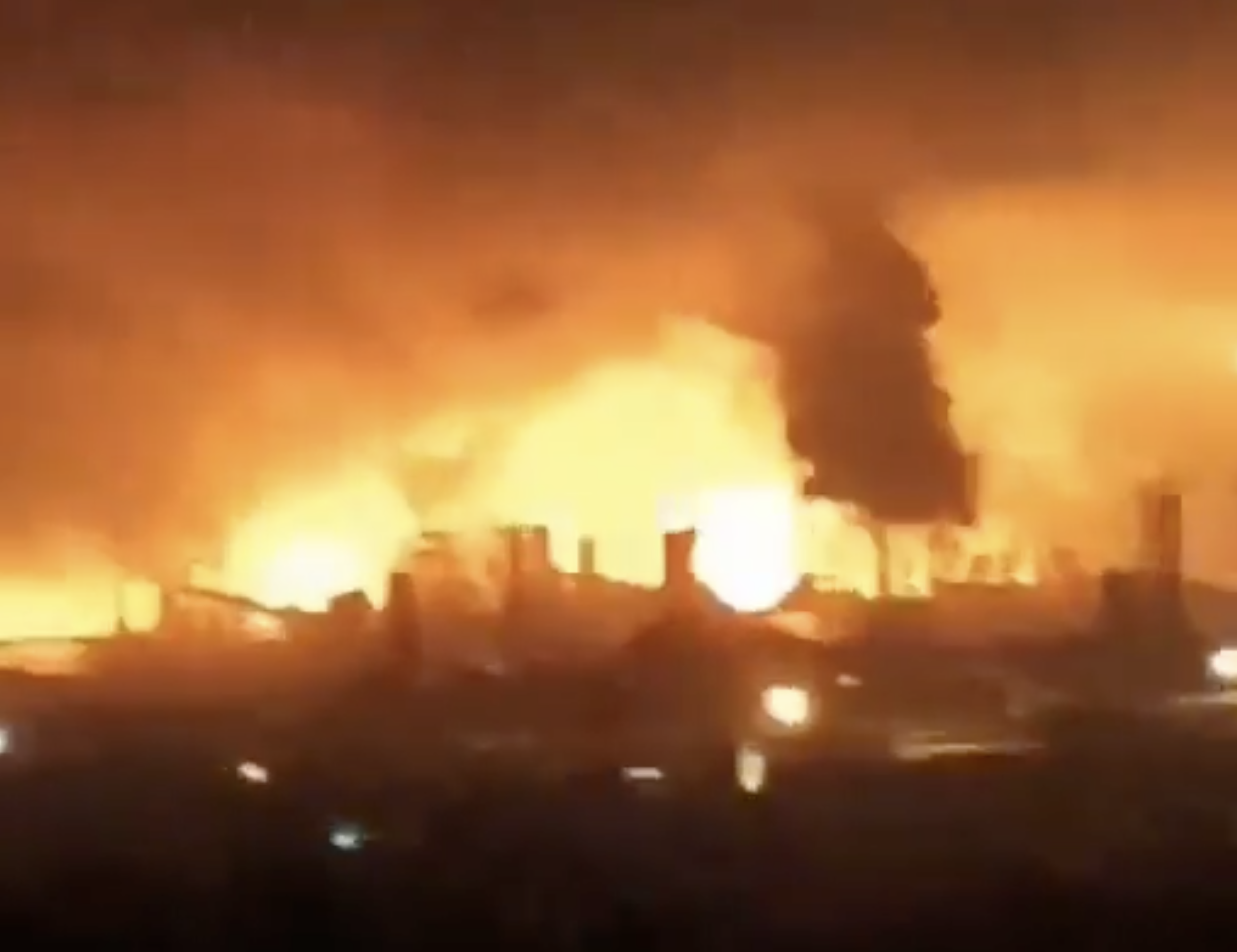 De drones die de installaties van Lukoil raakten veroorzaakten een grote brand.