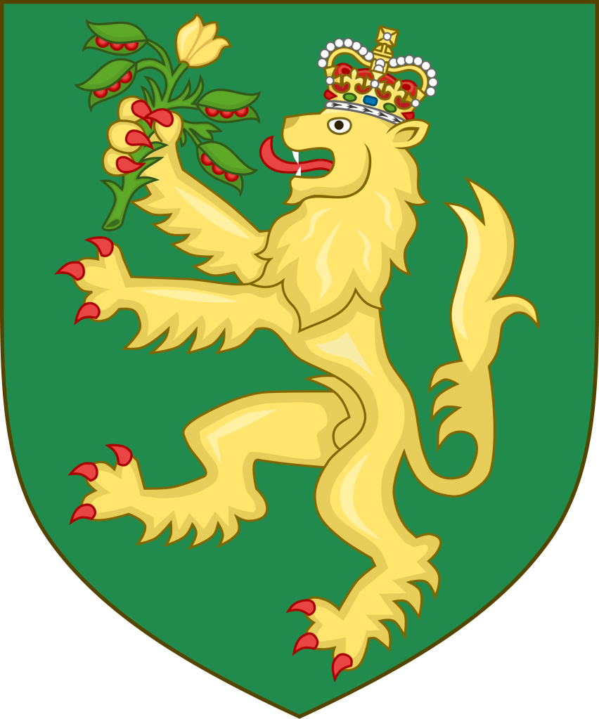 Het wapen, geschilderd op perkament, wordt officieel beschreven als: “Groen, een leeuw staande op zijn achterpoten, gekroond met een gouden kroon, die in zijn rechterpoot een takje heidebrem vasthoudt”. De officiële beschrijving bevestigt daarmee dat het takje in de poot van de leeuw een heraldische voorstelling is van heidebrem, de Planta genista van de Plantagenet-koningen (1448-1541): de dynastie van het Huis Plantegenet is naar de plant vernoemd.