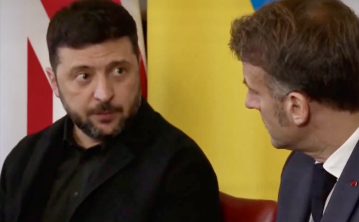 President Zelensky en zijn Franse ambtgenoot Macron (screenshot)