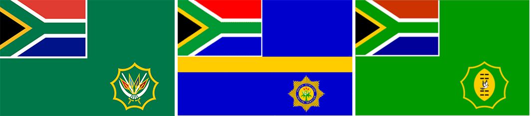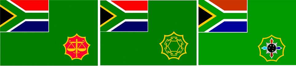 In het kielzog van het aannemen van een nieuwe nationale vlag in 1994, veranderden er een aantal vlaggen mee, Die vlaggen zien we hieronder. Ze hebben met elkaar gemeen dat ze allemaal de Zuid-Afrikaanse vlag in het kanton hebben.