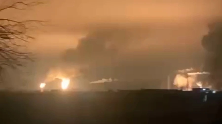 De lokale autoriteiten bevestigden een brand in een industriegebied, terwijl berichten op sociale media suggereerden dat bij de aanval de petrochemische fabriek van Stavrolen werd getroffen.