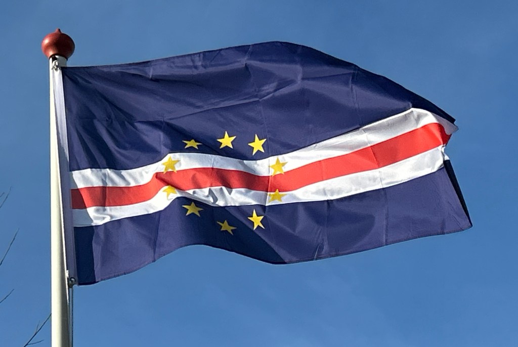 Vanaf de onafhankelijkheid in 1975 tot 1992 gebruikte Kaapverdië een vlag die sterk op die van Guinee-Bissau leek. De enige verschillen zaten ‘m in de krans van maïsstengels rond de zwarte ster aan de broekzijde en een gestileerde mossel in het midden van de stengels en de langere lengte van de Guinee-Bissause vlag.