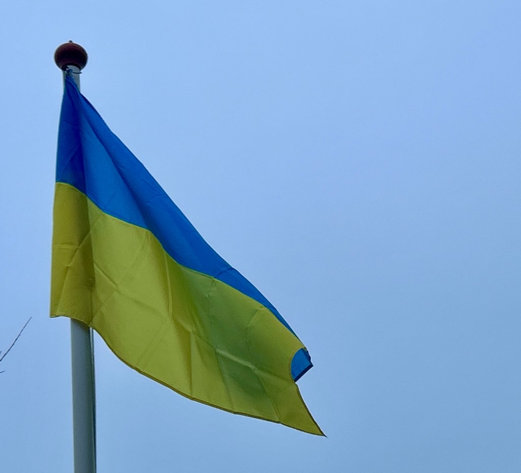 De vlag van Oekraïne bestaat uit twee even brede horizontale banen van blauw en geel.