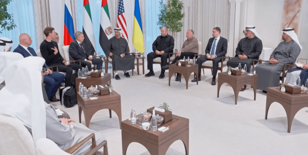 De eerste driezijdige vredesbesprekingen tussen Rusland, Oekraïne en de Verenigde Staten in Abu Dhabi (Verenigde Arabische Emiraten) zijn zonder duidelijke doorbraak beëindigd, terwijl de gevechten voortduren. Gastheer Mohammed bin Zayed Al Nahyan (president van de Emiraten en emir van Abu Dhabi) leidde de gesprekken met o.a. de Amerikaanse presidentiële gezanten Steve Witkoff en Jared Kushner, Igor Kostyukov, hoofd van het directoraat-generaal van de Russische strijdkrachten, Kyrylo Budanov, stafchef van de Oekraïense president en Rustem Umerov, secretaris van de Nationale Veiligheids- en Defensieraad van Oekraïne.