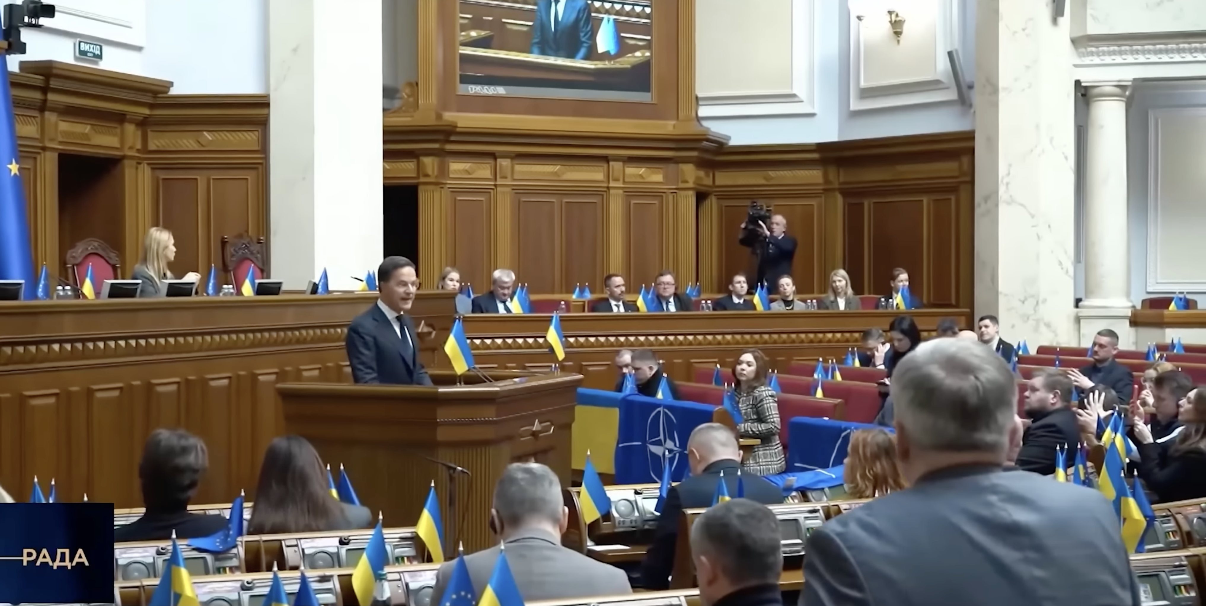 Daarna bezocht Rutte het Oekraïense parlement, de Verchovna Rada, voor een ontmoeting met de eerste vice-voorzitter, waarna hij een toespraak hield bij de opening van de nieuwe zitting.