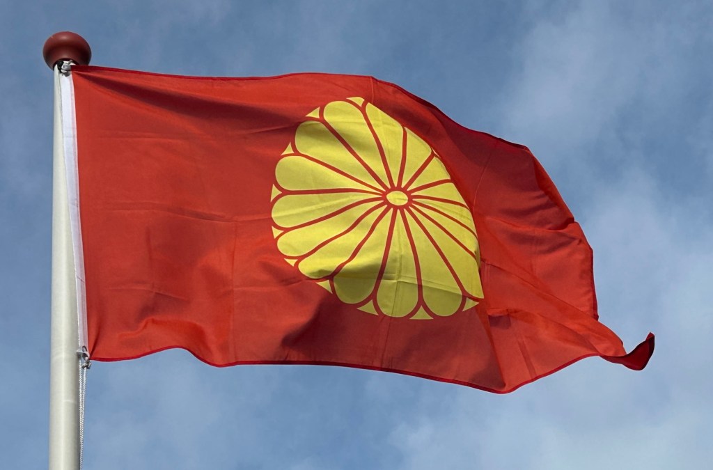 De keizerlijke standaard van Japan is rood met in het midden een gestileerde chrysant (Chrysantemum) met zestien bloemblaadjes in goud.