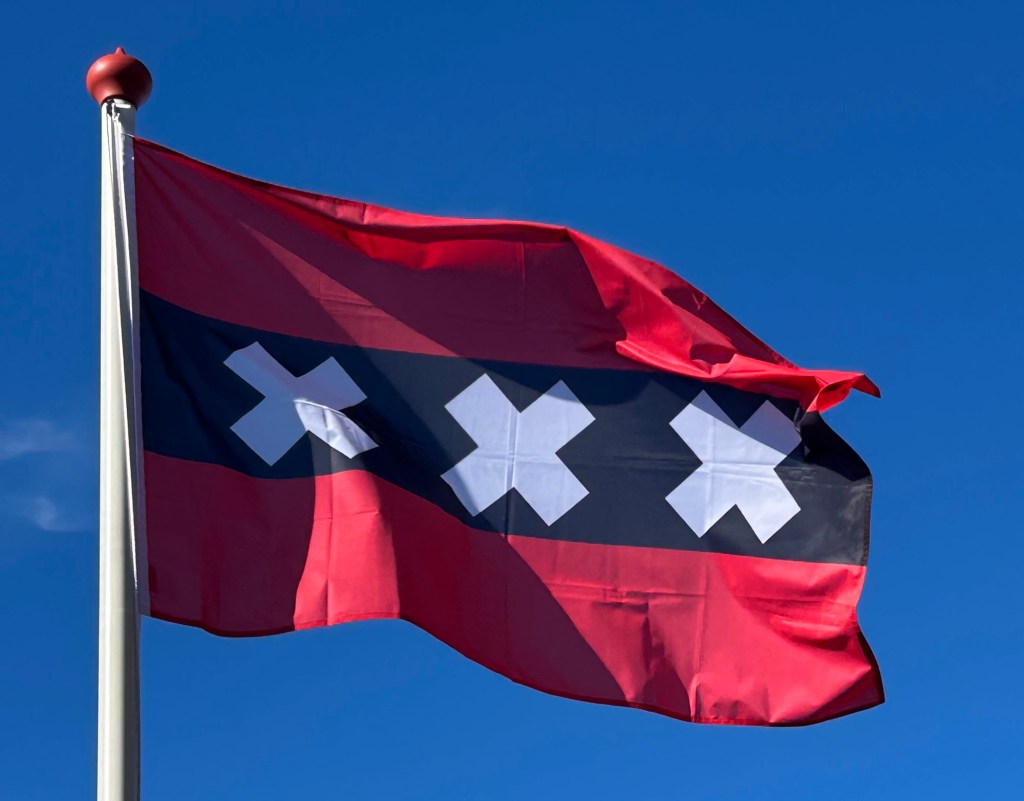 De vlag van Amsterdam is een horizontale driekleur van rood-zwart-rood, met in de middelste baan drie korte, witte Andreaskruisen, ze werd officieel aangenomen op 5 februari 1975, hoewel de vlag al veel langer meegaat.