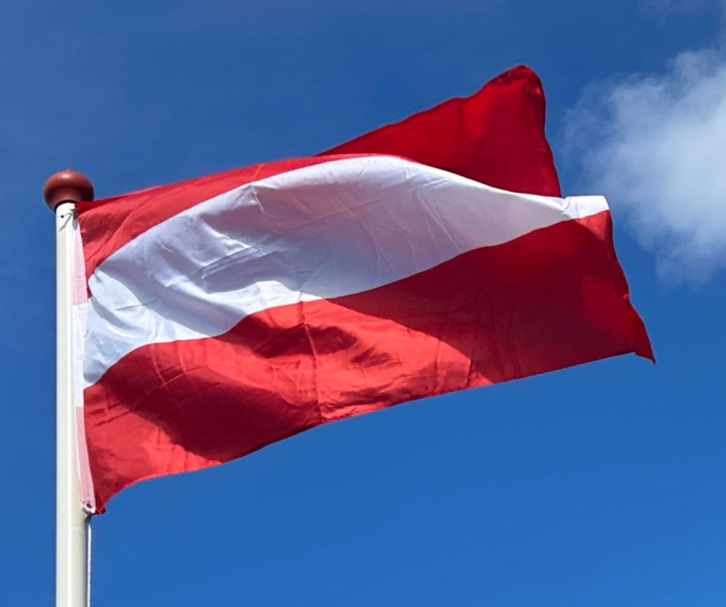De rood-wit-rode vlag is daarmee gelijk aan die van Dordrecht, Leuven en Oostenrijk.