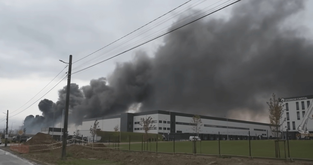 Grote rookwolken trekken over een buitenwijk van Lviv na een Russische treffer (screenshot)