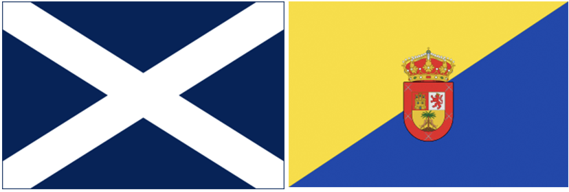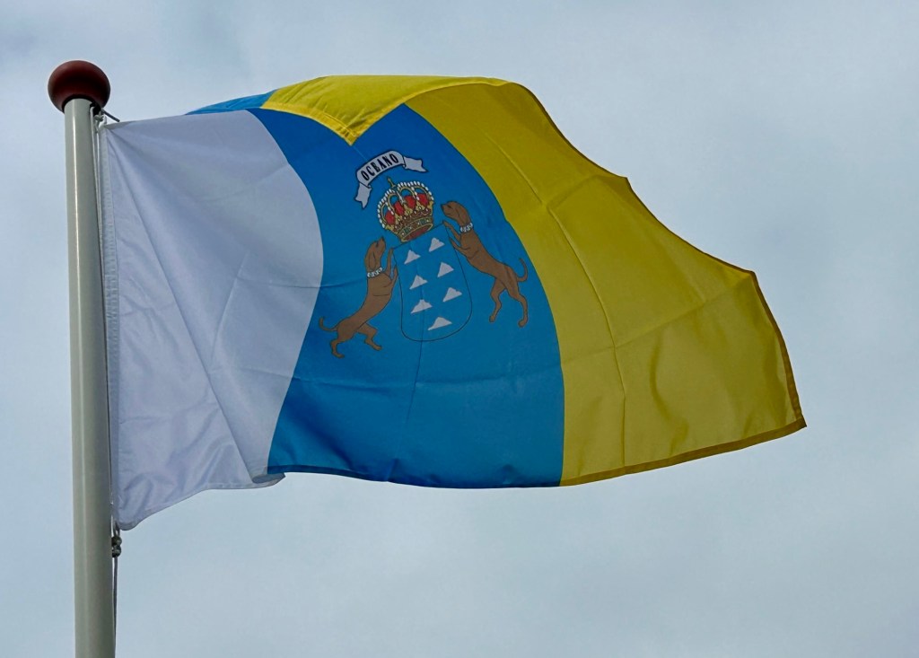 Links: De vlag van de provincie Tenerife (tevens de eilandvlag van Tenerife) / Rechts: De vlag van de provincie Gran Canaria (tevens de vlag van het gelijknamige eiland)