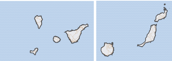Zowel de vlag van Tenerife als die van Gran Canaria vinden hun oorsprong bij die van weer een andere indeling: die van Spaanse maritieme provincies (in totaal is de Spaanse kust in 30 maritieme provincies verdeeld). De vlag van Tenerife stamt uit 1845 en toont een wit andreaskruis op een marineblauw veld. Hoewel de vlag daarmee heel erg op die van Schotland lijkt, is het blauw van de vlag van Tenerife iets donkerder. De vlag van Gran Canaria stamt uit 1869 en wordt diagonaal gedeeld van de onderkant van de broeking naar de bovenhoek van de vlucht, geel boven en blauw onder. In 1989 werd aan deze vlag het wapen toegevoegd.
