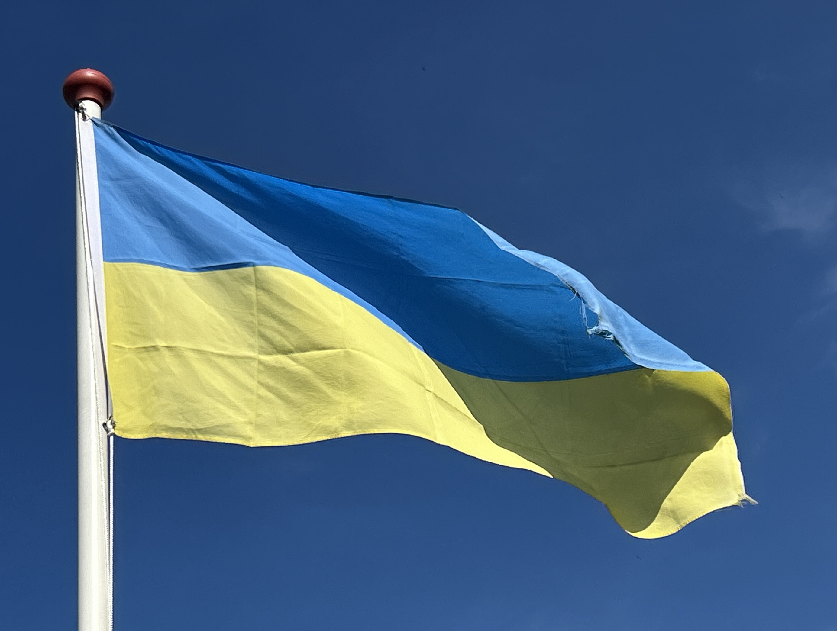 De vlag van Oekraïne bestaat uit twee even brede horizontale banen van blauw en geel.