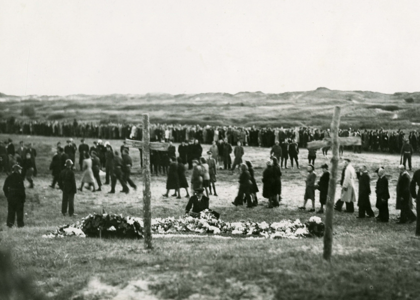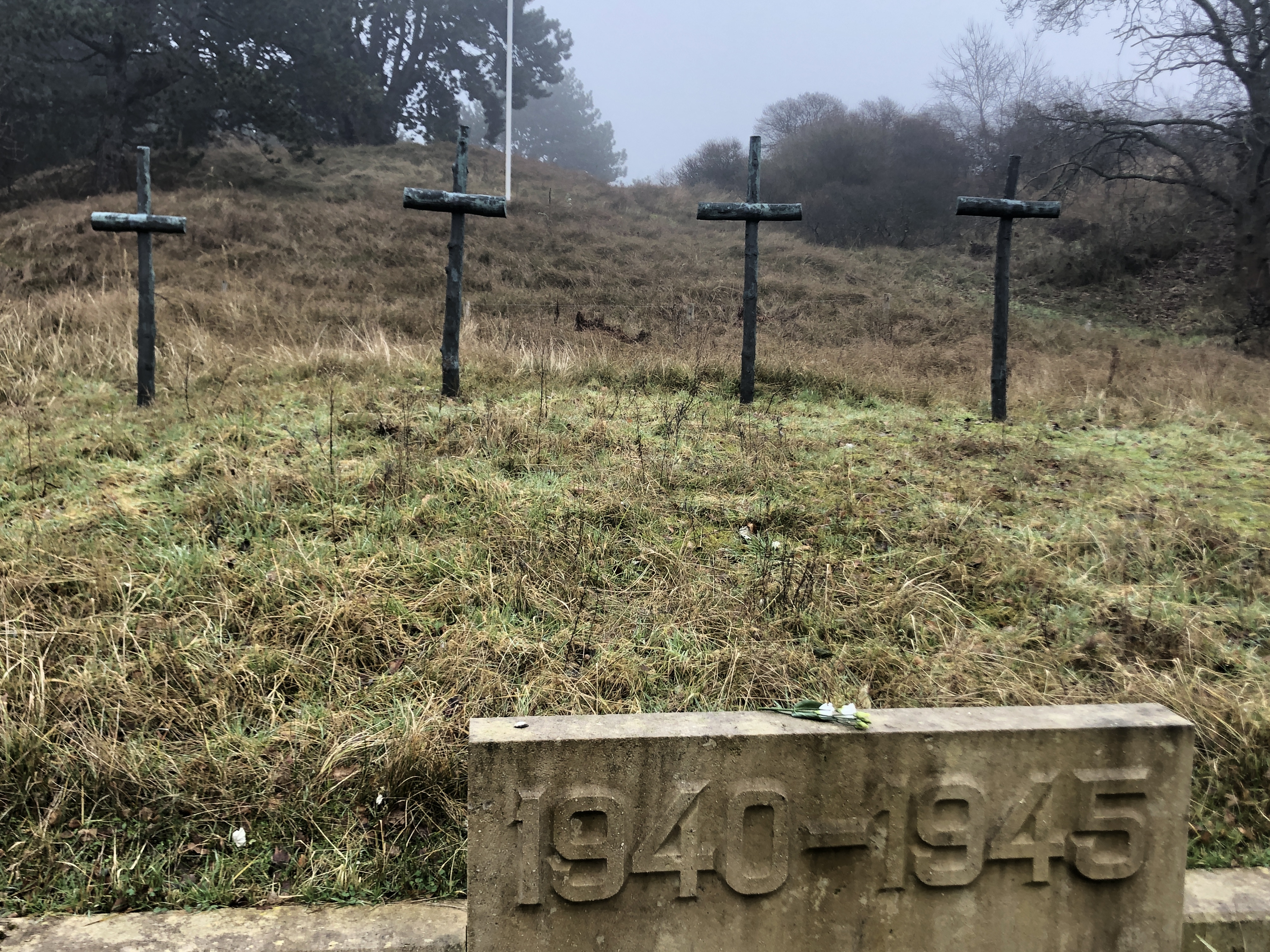 Op 3 november 1946 werden hier door een groepje verzetsvrienden vier houten fusilladekruisen geplaatst. Op die dag werd de eerste oorlogsherdenking georganiseerd, een stille tocht van het Oranjehotel (de Polizeigefängnis in Scheveningen) naar het monument. Aan deze tocht, die ook op de radio werd uitgezonden, namen zo’n 30.000 mensen deel.