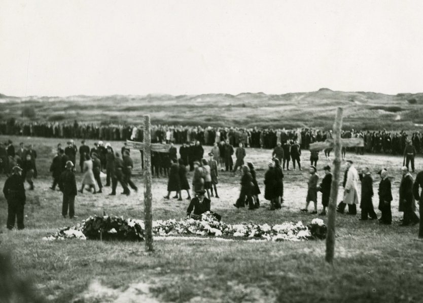De eerste dodenherdenking op 3 mei 1946 op de Waalsdorpervlakte (publiek domein)