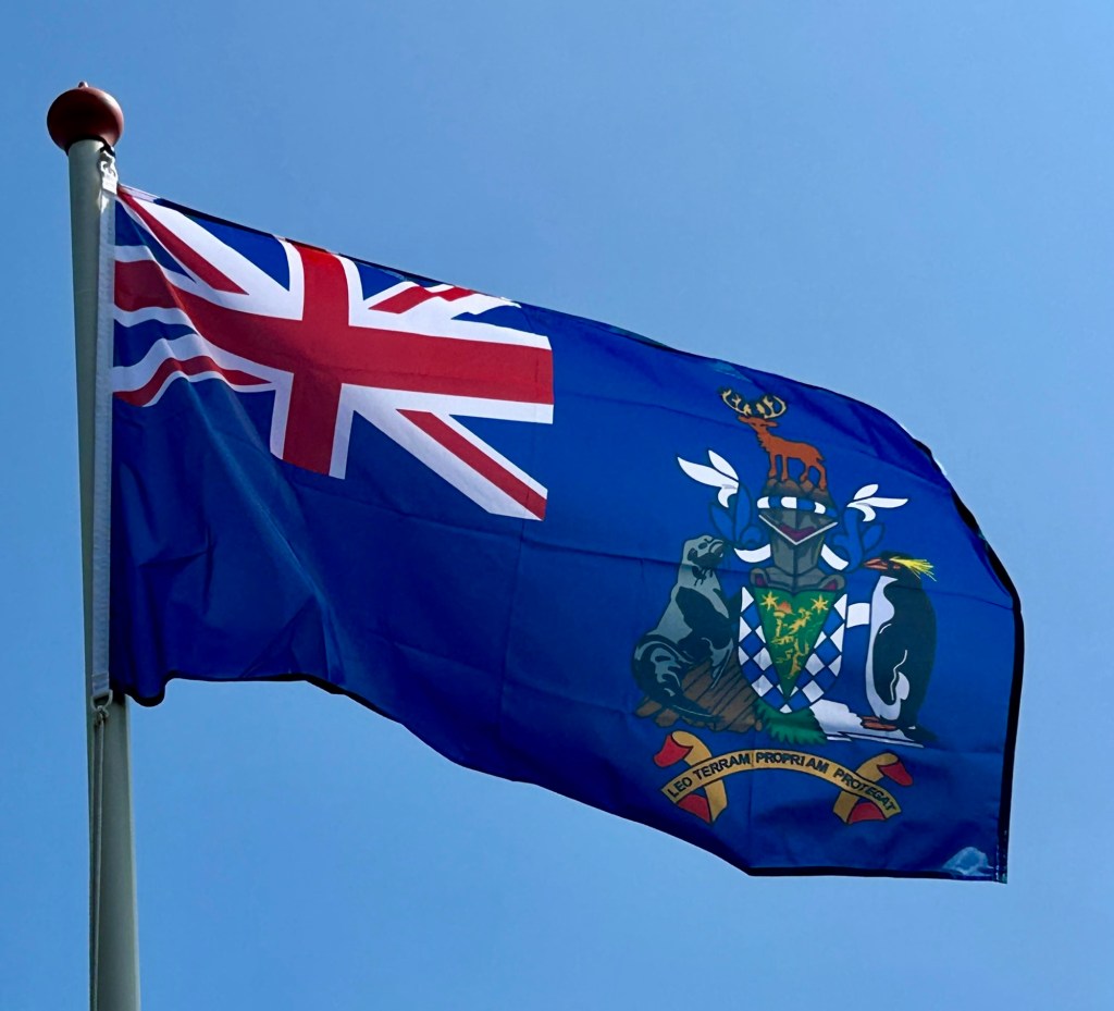 De vlag is al de tweede versie van dit gebied dat, zoals we eerder zagen, tot 1985 administratief onder de Falklandeilanden viel. Bij het instellen van het nieuwe territorium, op 3 oktober 1985, was er nog geen eigen vlag. Het was wachten op een eigen wapen, dat op 14 februari 1992 verleend werd, vooraleer er sprake kon zijn van een vlag.