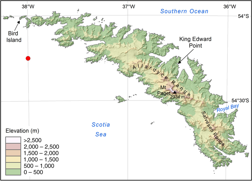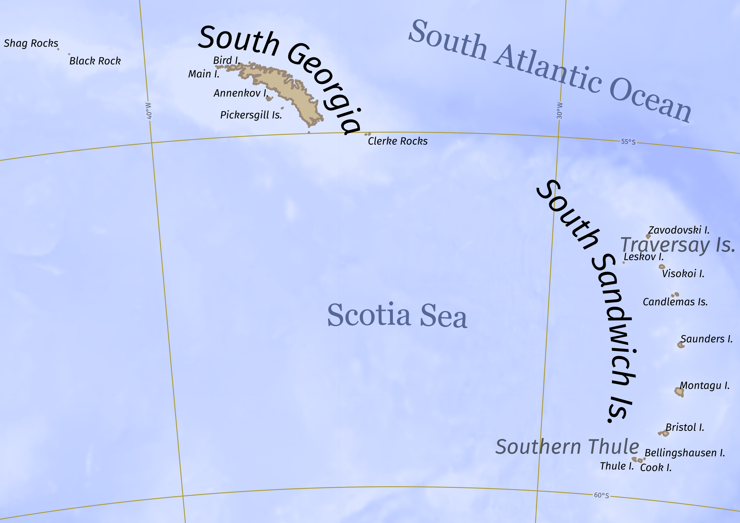 Zuid-Georgia is een Brits overzees gebied in de Zuidelijk Atlantische Oceaan, 1.400 km ten oosten van de Falklandeilanden. Het langgerekte eiland is 170 km lang en gemiddeld 34 km breed.