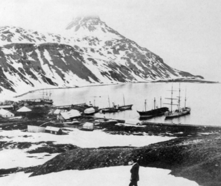 Grytviken in 1914, gefotografeerd door de Shackleton-expeditie (publiek domein)