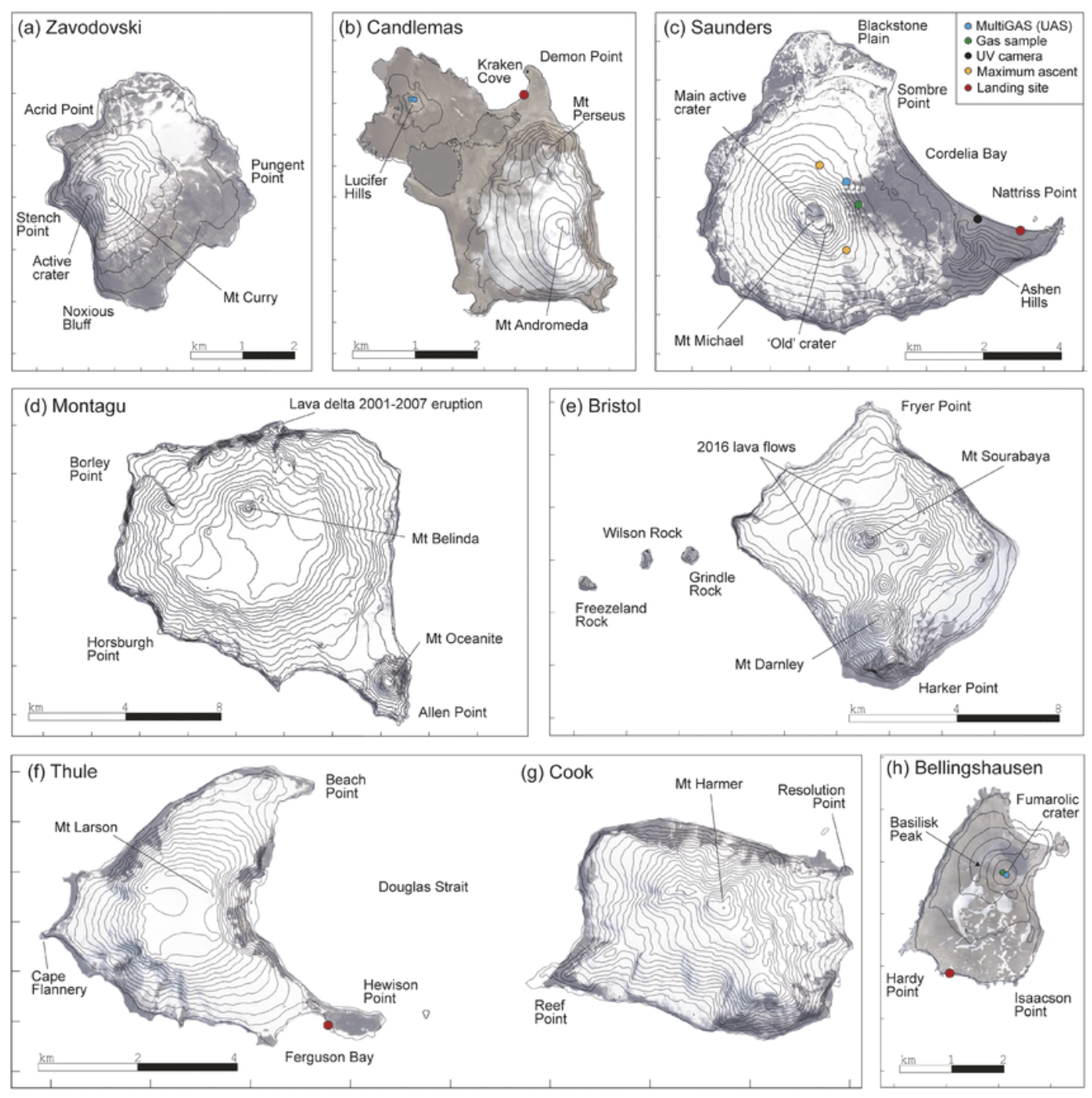 Op Montagu Island bevindt zich de 1.370 m hoge Mount Belinda, een stratovulkaan, die eind juli 2001 uitbarstte en jarenlang aanhield en een 3,5 km lange lavastroom opleverde, van de krater tot aan de zee. In 2007 kwam de vulkaan weer tot rust.