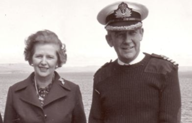 Premier Margaret Thatcher en kapitein Brian Young (1930-2009) (fotograaf onbekend)