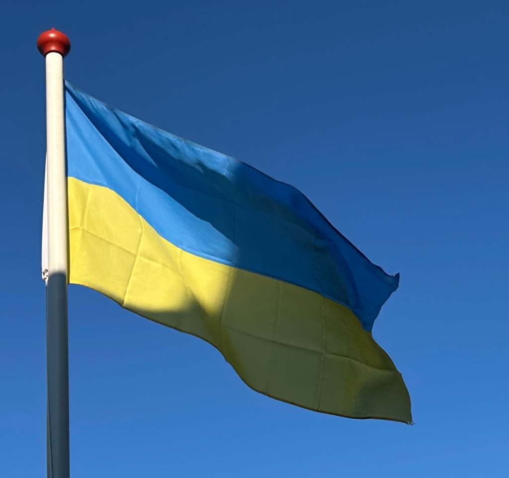 De vlag van Oekraïne bestaat uit twee even brede horizontale banen van blauw en geel.
