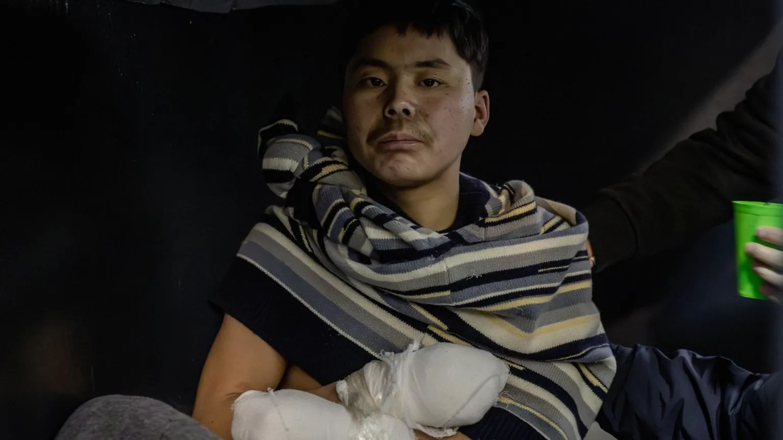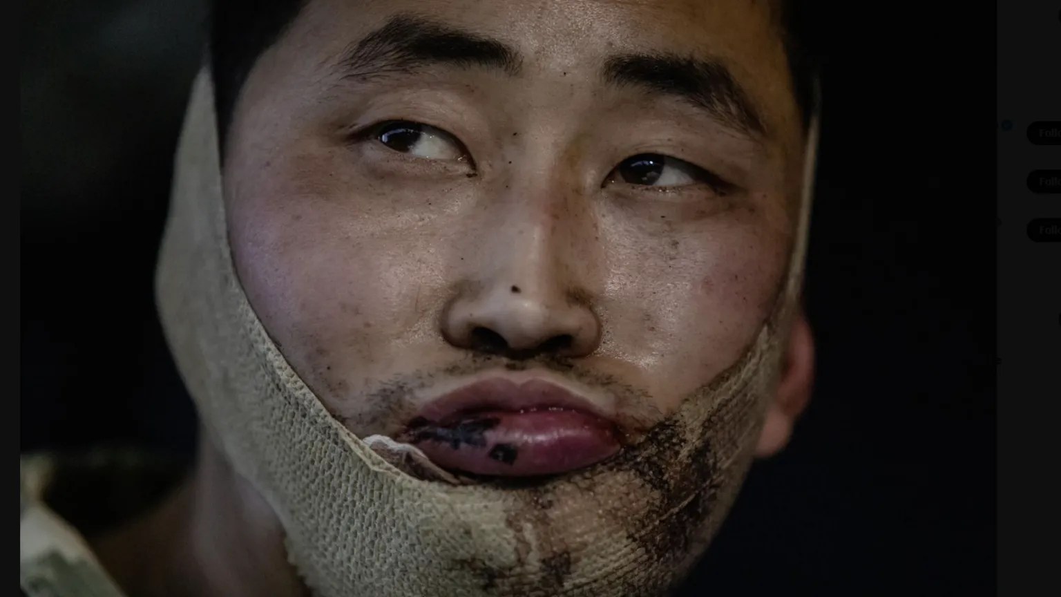 Een van de twee door president Zelensky getoonde Noord-Koreaanse krijgsgevangenen (foto gedeeld door president Zelensky op X)