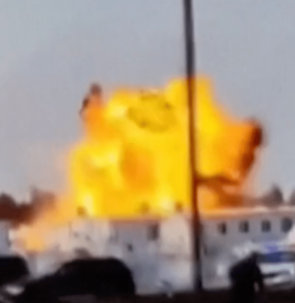Kort nadat het neerkomt is er enorme explosie te zien (screenshot)