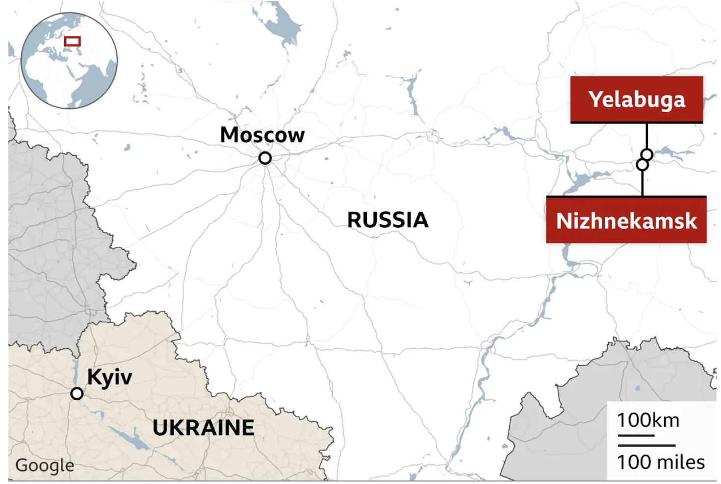 Lokale autoriteiten zeiden dat de aanvallen de stad Jelaboega (Yelabuga) troffen (waar vermoedelijk drones worden geproduceerd) en een olieraffinaderij in het nabijgelegen Nizhnekamsk.