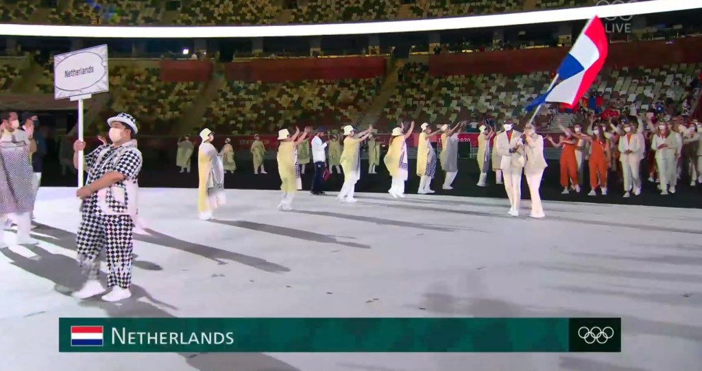 De Japanse vlag wordt het stadion binnengedragenLinks: De vlag is gehesen / Rechts: Keizer Naruhito van Japan kijkt nauwlettend toeOlympische ringen van houtVuurwerk na de openingsactHet Refugee Olympic Team komt uit onder de Olympische vlag en bestaat uit 29 sporters uit 11 landen: Afghanistan, Congo, Democratische Republiek Congo, Eritrea, Irak, Iran, Kameroen, Soedan, Syrië, Venezuela en Zuid-Soedan Links: Binnenkomst van het Arubaanse team / Rechts: Binnenkomst van het Surinaamse teamBinnenkomst van het Nederlandse teamTijdens de binnenkomst van het Nederlandse team schakelt de regie even naar de eretribune met Thomas Bach, de ere-voorzitter van het Internationaal Olympisch Comité en keizer Naruhito van JapanOmdat Rusland vanaf 2019 voor vier jaar geschorst werd voor deelname aan internationale sportmanifestaties door het World Anti-Doping Agency, vanwege manipulaties met dopingcontroles , is er een tijdelijke oplossing bedacht om Russische atleten die alle officiële en onafhankelijke dopingcontroles hebben ondergaan, toch deel te laten nemen, dit gebeurt onder de letters R.O.C. (Russian Olympic Committee), met een speciale vlag: de Russische kleuren verbeeld als het Olympisch vuur, met eronder de Olympische ringenEveneens een geval apart is Taiwan: deze eilandstaat wordt door China beschouwd als een afvallige provincie en kan daardoor noch onder die naam, noch onder z’n vlag uitkomen; een oplossing werd gevonden door Taiwan ‘Chinese Taipei’ te noemen (Taipei is de hoofdstad van Taiwan), dit alles onder een speciale vlag, waarin het ‘witte zon-symbool’ van de Taiwanese vlag is verwerkt met daaronder de Olympische ringenBinnenkomst van het Chinese teamBinnenkomst van het het team van Tuvalu in exotische uitdossingBinnenkomst van het team van Tonga met de goed-geöliede taekwondo vlagdrager Pita TaufatofuaBinnenkomst van het team van Vanuatu met een niet minder ingevette vlagdrager: roeier Riilio RiiLinks: Binnenkomst van het Palestijnse team / Rechts: Binnenkomst van het Liechtensteinse teamLinks: Binnenkomst van het Belgische team / Rechts: Binnenkomst van het Luxemburgse teamPortugal zorgde voor een wilde show met de nationale vlag in de hoofdrol!Links: Binnenkomst van het Amerikaanse team / Rechts: Binnenkomst van het Franse teamDe hekkensluiters: binnenkomst van het team van gastland JapanKeizer Naruhito en IOC-ere-voorzitter Thomas Bach applaudisseren voor het Japanse teamOpnieuw vuurwerk!De Olympische eed-afleggingLinks: Een fors exemplaar vlag met daarboven het logo van Tokyo 2020 gemaakt van grote blokken / Rechts: Een wereldbol bestaande uit drones hangt boven de arenaKeizer Naruhito verklaart de Spelen voor geopendDe Olympische ‘stadionvlag’ (niet te verwarren met het officiële exemplaar met de franje langs de zijden!) wordt de arena binnengebrachtDe vlag arriveert bij het hoofdpodium met een pagode-achtig bouwwerk, wat symbool staat voor Mount FujiEn de Olympische vlag wappert!Het slotstuk: het ontsteken van het Olympisch vuur op ‘Mount Fuji’, door de Japanse tennister Naomi Osaka: de Olympische Spelen 2020 zijn begonnen!
