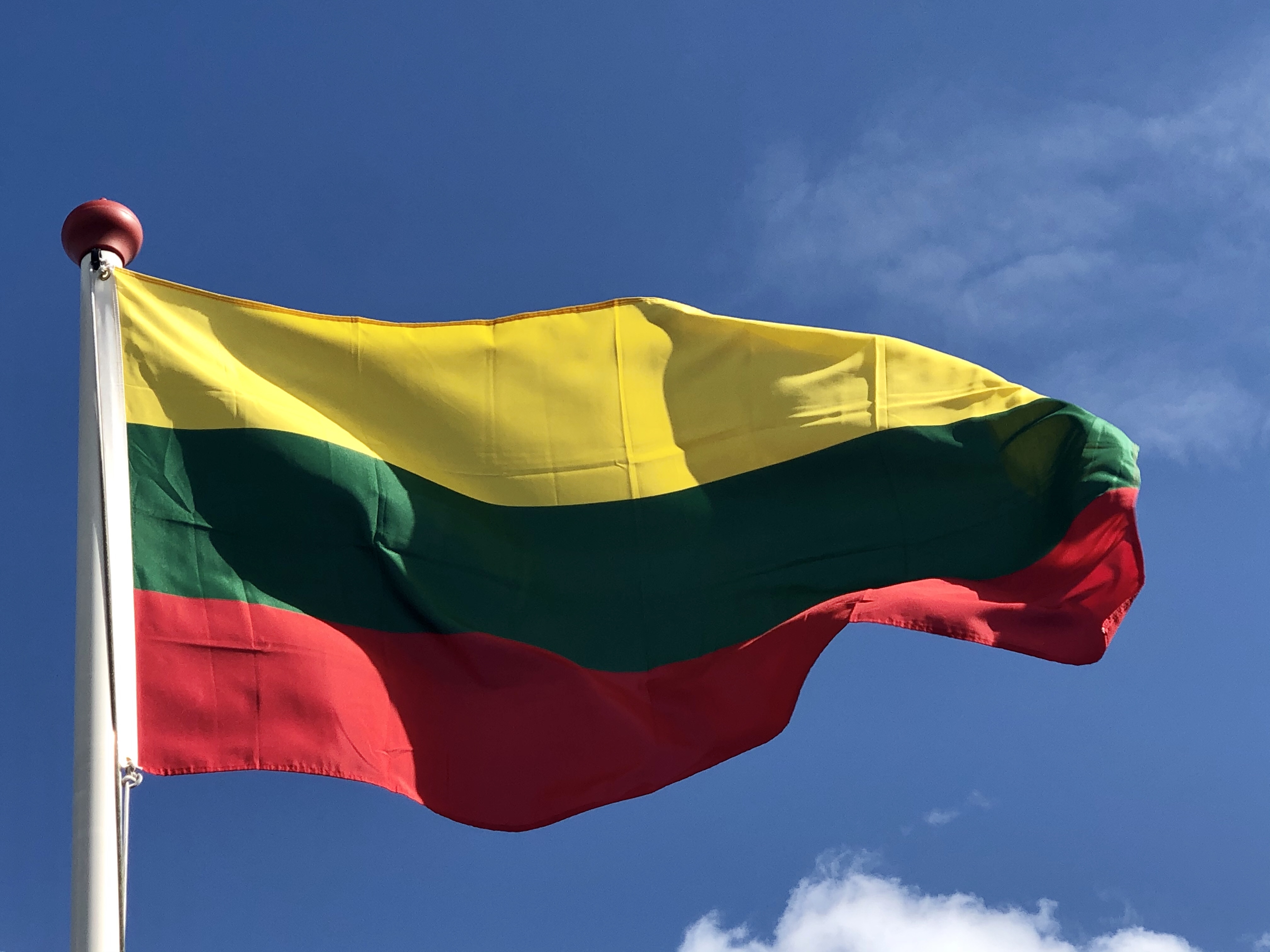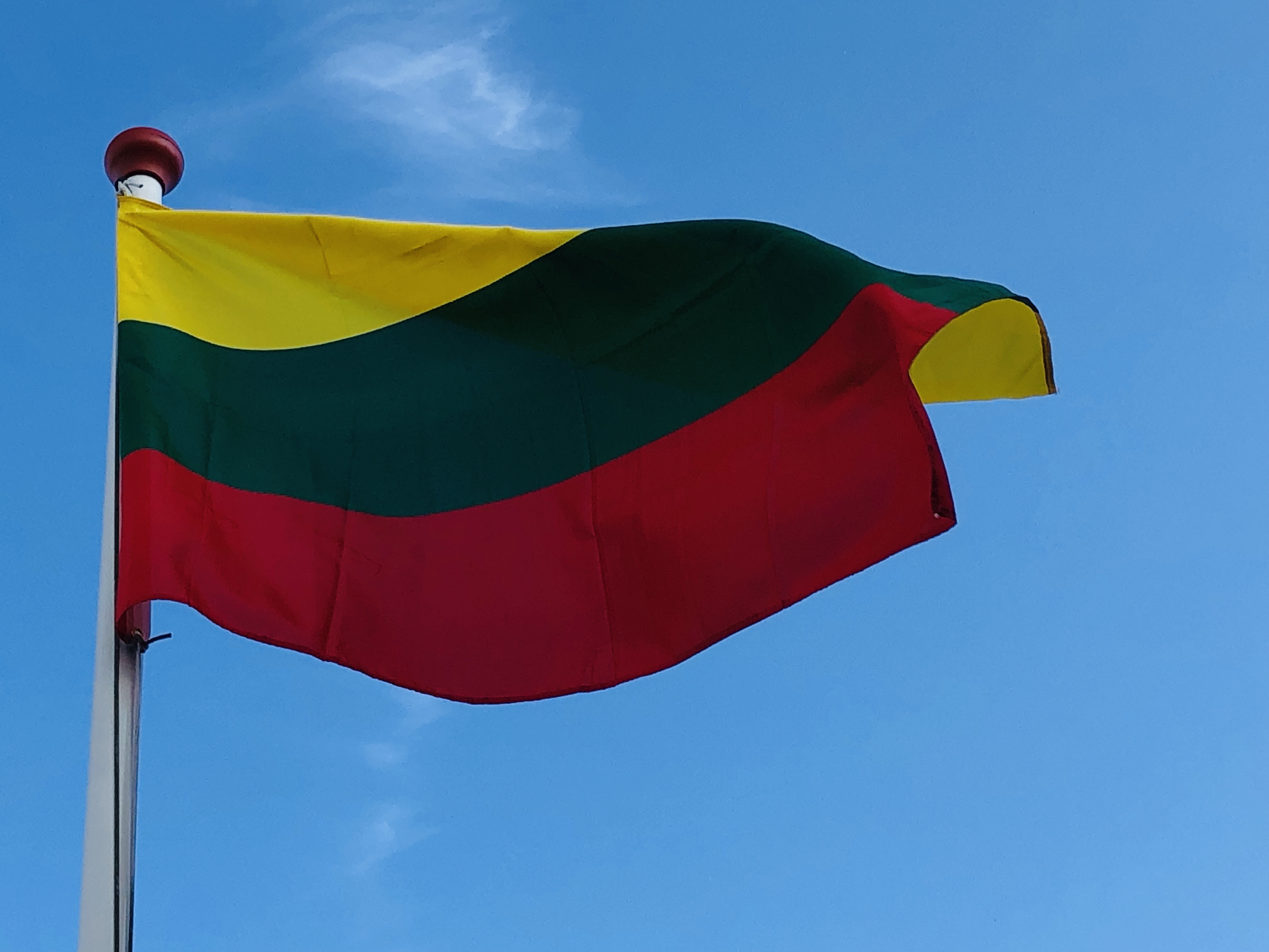 De gebruikte kleuren werden uitgelegd als blauw voor de hemel, zwart voor het land en wit voor de sneeuw. Toen deze vlag in 1896 tijdens een zangfestijn werd gebruikt als demonstratie tegen de Russische overheersers, werd hij prompt verboden. Daarmee bereikte de vlag onmiddellijk de status van nationaal symbool.