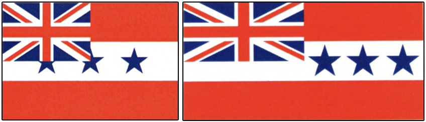 In het kanton (de broekings- of linkerbovenhoek) werd op de vlag de Britse Union Flag of Union Jack gezet. Bij gebrek aan fotografisch bewijs is niet exact bekend of de drie sterren daarbij op hun plek bleven (waardoor twee sterren gedeeltelijk bedekt werden) of dat ze verder naar de vlucht opschoven.