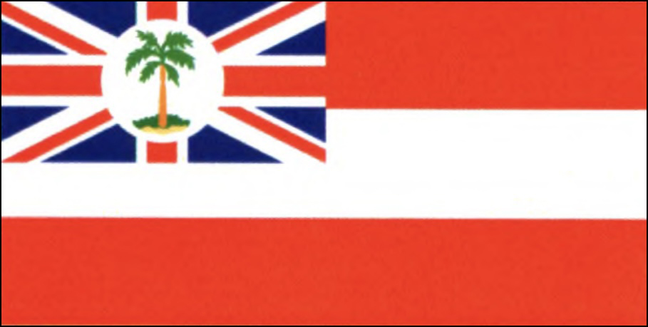 V.l.n.r.: Vlag van de Gilbert & Ellice Islands (1937-1975/1979) / Vlag van Kiribati (1979-heden) / Vlag van de Ellice Islands (1976-1978)