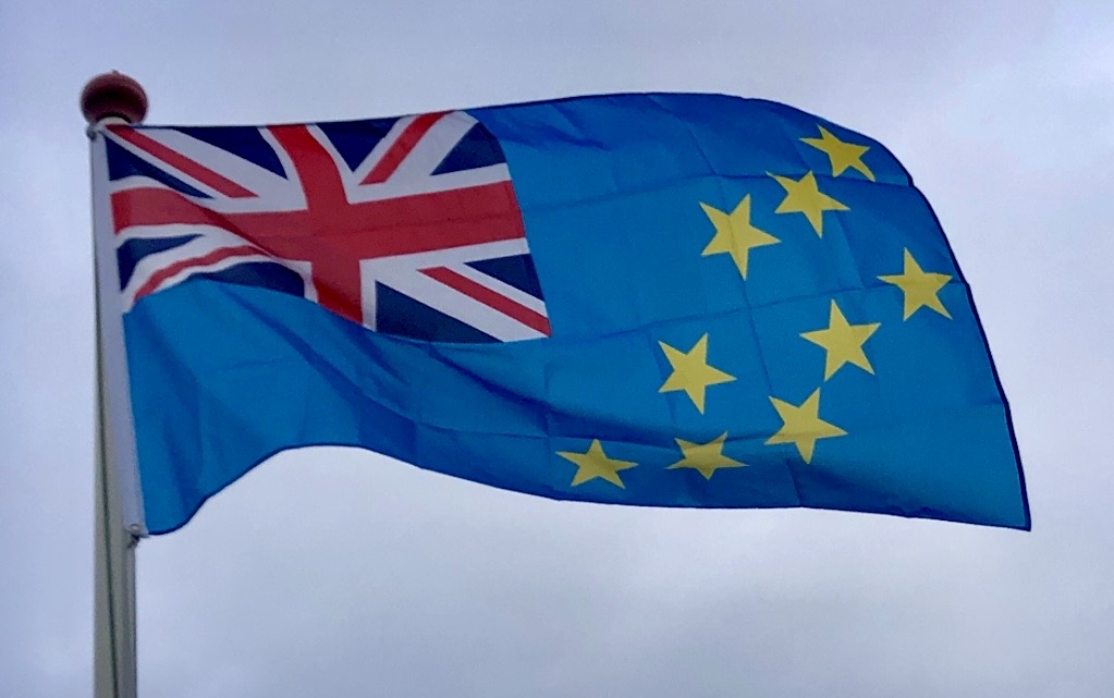 Tuvalu is weliswaar zelfstandig, maar wel lid van het Britse Gemenebest en Koning Charles III is dan ook officieel het staatshoofd. Net als bij veel andere landen verklaart dat de aanwezigheid van de Britse Union Flag of Union Jack in het kanton. Premier van Tuvalu is sinds 26 februari 2024 Feleti Teo (1962).