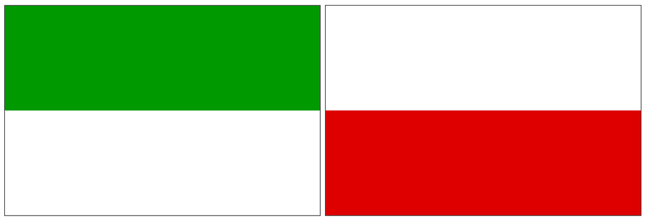 Links: Dienstvlag van Duitsland (1950-heden), in gebruik bij de overheid en het leger / Rechts: Marinevlag van Duitsland (1956-heden)