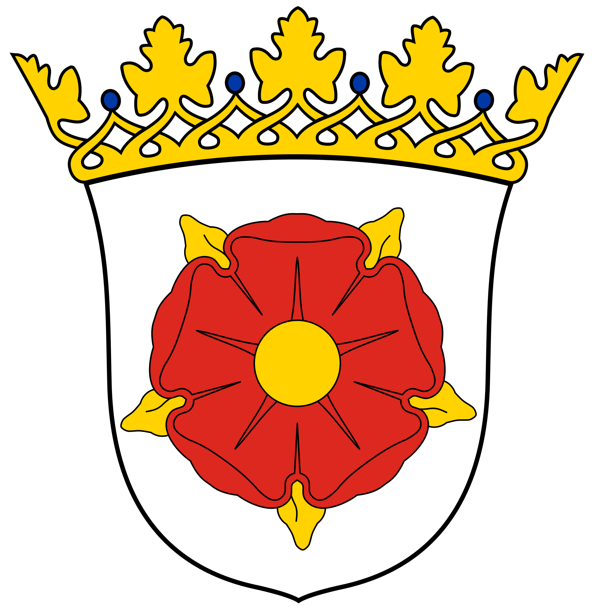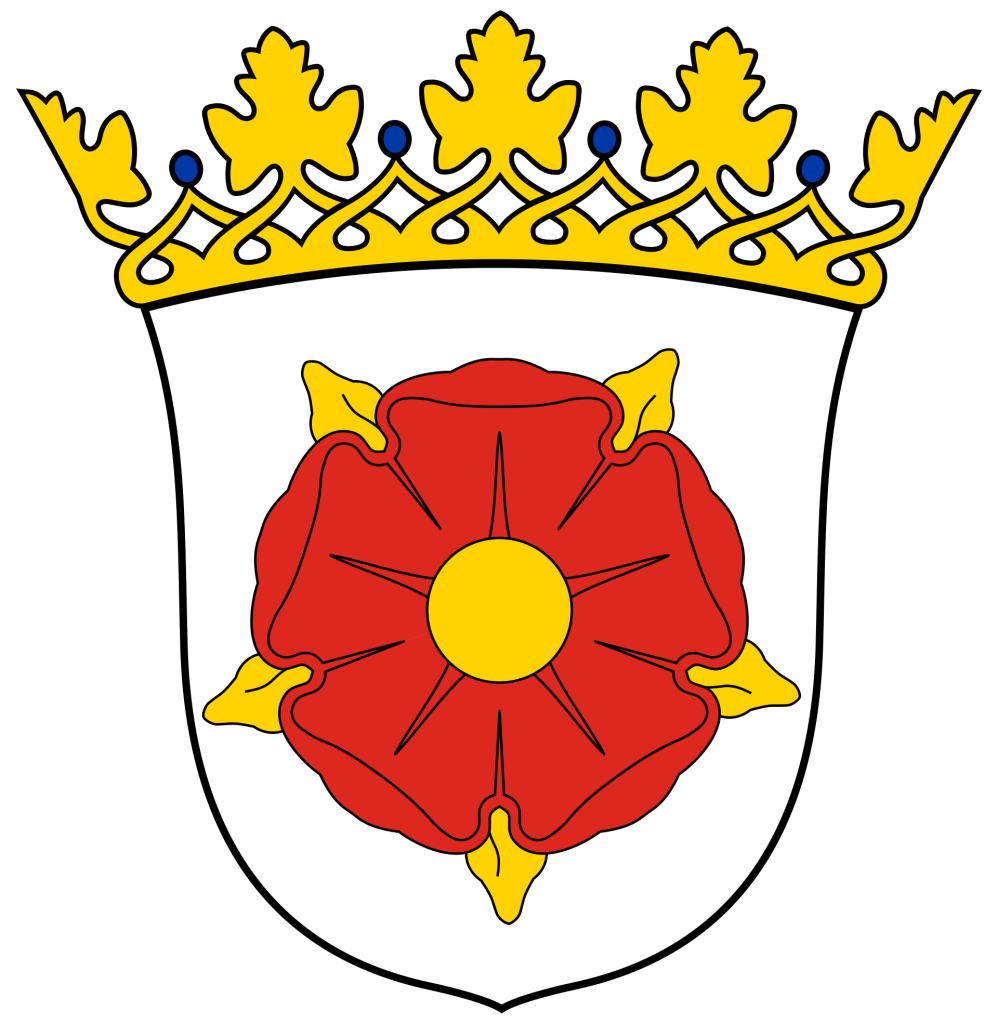 In de zogenaamde “insteek” onderin het wapen zien we het symbool van Lippe, dat door het Huis van Lippe zeker tot 1222 terug gaat, een rode roos met vijf bloembladen op een witte achtergrond.
