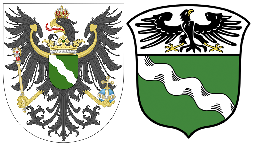 Links: Wapen van (Noord)-Rijnland (de Rijnprovincie) (1817/1835-1926)/ Rechts: Wapen van (Noord)-Rijnland (de Rijnprovincie) (1926-1947)