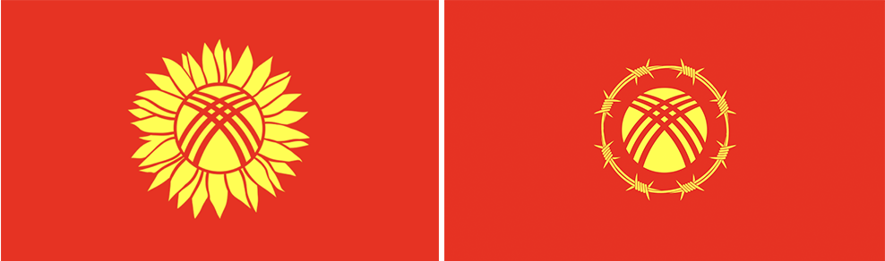 Het Kirgizische éénkamer-parlement, de Zhogorku Kengesh, was in meerderheid van mening dat de golvende stralen teveel aan een zonnebloem deden denken (overigens lijkt het er op dat dit idee rechtstreeks van de autocratische president Sadyr Japaravov kwam en het parlement gedwee volgde).