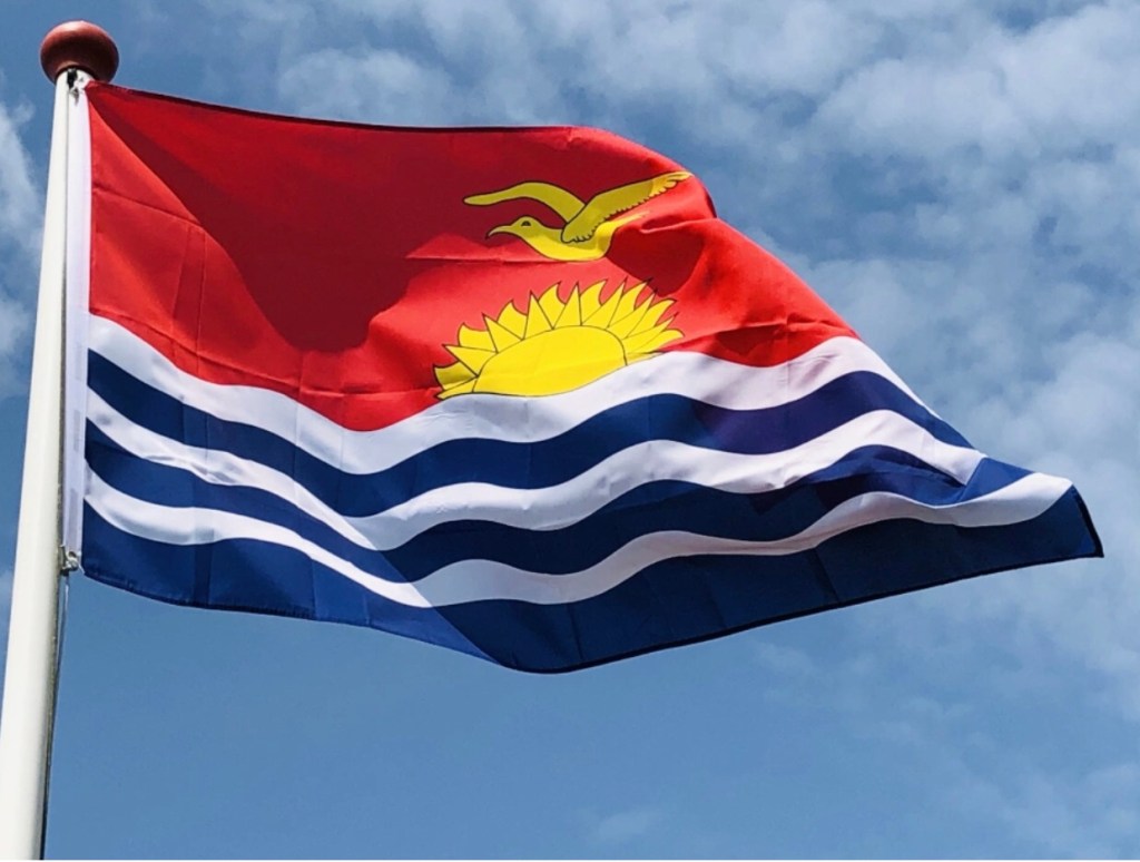 De nieuwe vlag werd voor het eerst gehesen op Onafhankelijkheidsdag, 12 juli 1979, in de hoofdstad Tarawa. En daarmee is Sir Arthur Grimble naast ontwerper van het wapen, ook ontwerper van de vlag.