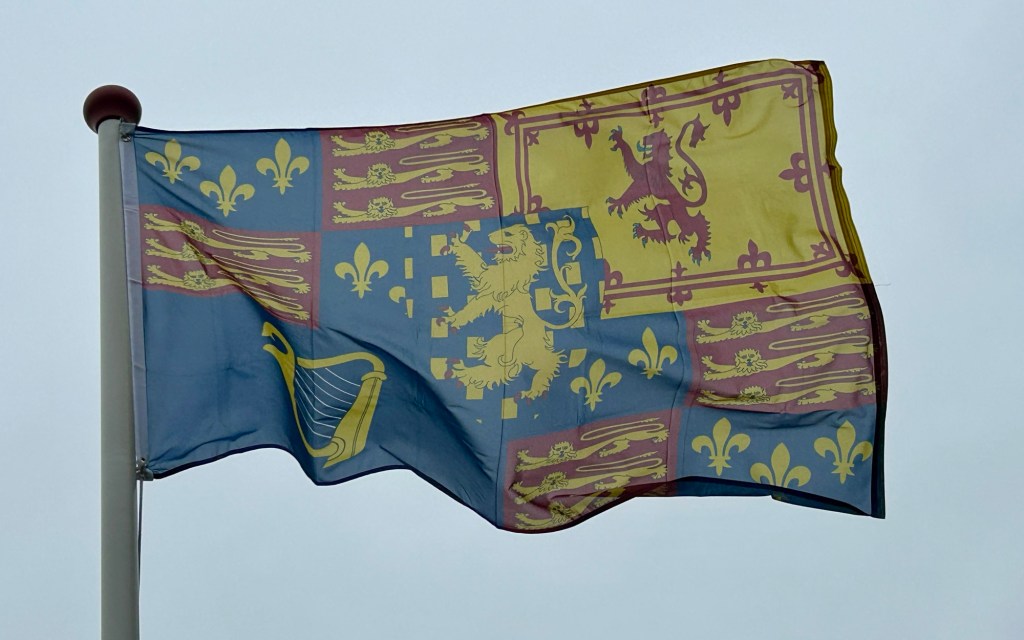 De tweede vlag van vandaag is een koninklijke standaard en wel een historische. Vandaag is het 335 jaar geleden dat stadhouder Willem III en zijn vrouw, de Engelse prinses Mary Stuart, tot koning en koningin van Engeland, Ierland en Schotland werden gekroond, waarmee Willem een dubbelfunctie kreeg, naast koning over de Britse Eilanden, bleef hij ook stadhouder van de Republiek der Zeven Verenigde Nederlanden.