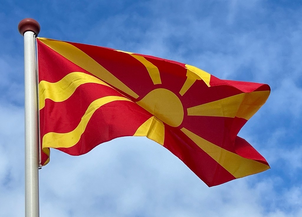 De vlag van Noord-Macedonië (toen nog Macedonië) werd op 15 juli 1992 ingevoerd en heeft een rood veld met een gestileerde gouden zon met acht lange en acht korte stralen, de zogenaamde Zon van Vergina. Dit symbool komt voor op een in 1977 gevonden gouden kistje met het gebeente van Phillipus II van Macedonië (382 v. Chr.-336 v. Chr.), de vader van Alexander de Grote. Aangezien de Zon van Vergina als symbool gezien kan worden voor de hele regio Macedonië, maakte Griekenland hier bezwaar tegen.