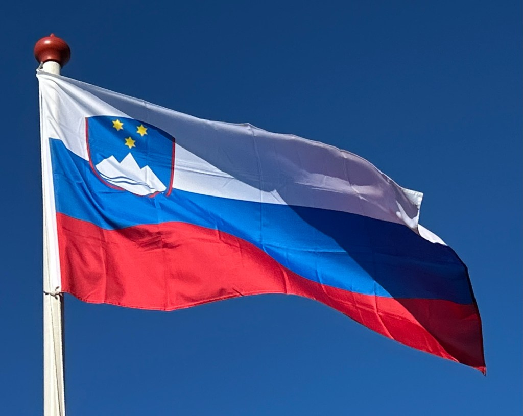 V.l.n.r.: de vlaggen van Servië, Slovenië en Slowakije