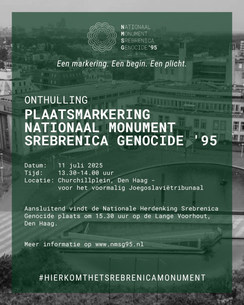 De herdenking van dit jaar wordt voorafgegaan door de ‘Vredesmars’, met de dubbele titel ‘Mars Mira Den Haag // Marš Mira Hag’. Tussen 13.30 u en 14.00 u wordt op het Churchillplein, de locatie van het voormalige Joegoslaviëtribunaal, een ‘plaatsmarkering’ onthuld. Deze markering, in opdracht van het Nationaal Monument Srebrenica Genocide ’95 (NMSG), is volgens de organisatie “de eerste fysieke stap richting een definitief Nationaal Monument Srebrenica Genocide ’95 op het Churchillplein in Den Haag”. Aansluitend gaat de tocht verder naar de nationale herdenking op het Lange Voorhout, gepland voor 15.30 uur.