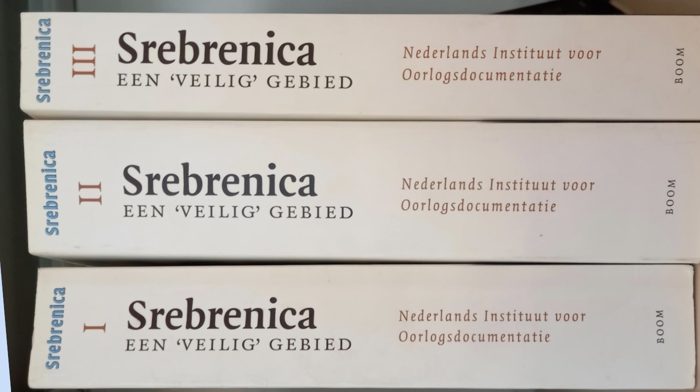 Het uit drie delen bestaande rapport “Srebrenica, een ‘veilig’ gebied” (foto: NIOD)