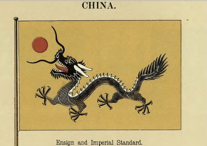 De vlag van vandaag is die van het Keizerrijk China onder de Qing-dynastie.