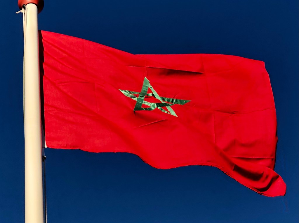 De vlag van Marokko is rood met in het midden een groot groen pentagram (een vijfpuntige ster). Dit oeroude symbool staat ook wel bekend als het Zegel van Salomon.