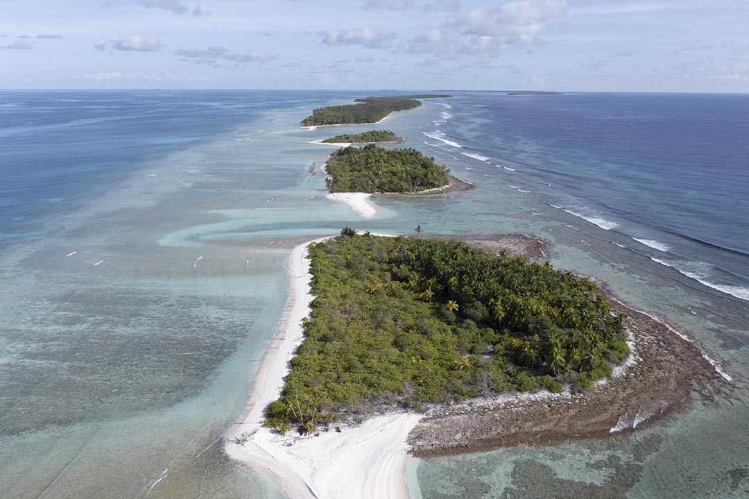 Een deel van het langgerekte atol Peros Banhos (met het Isle Pierre op de voorgrond), onderdeel van de Chagos-archipel, komt onder het bestuur van Mauritius, waarbij voormalige bewoners zullen kunnen terugkeren (fotograaf onbekend)